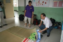 盧思鋒副書記一行首先抵達青龍湖中學,看望了計算機與信息工程學院實踐分團的師生,并觀看了正在進行的“我的大學生活”主題實踐成果展示。在實踐分團師生的住處,盧思鋒副書記看著大家在教室里睡的地鋪,幽默地說:“你們已經(jīng)經(jīng)歷了五天艱苦的生活,睡地鋪的經(jīng)歷也是難得的、寶貴的,希望你們繼續(xù)發(fā)揚這種艱苦奮斗的精神。”
