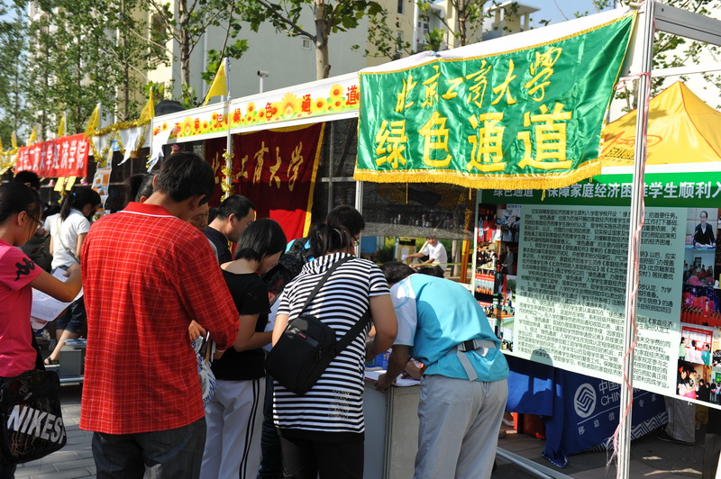 在 “綠色通道”接待站,學生借款辦理、國家助學貸款申請等各種程序井然有序, “綠色通道”繼續幫助家庭經濟困難新生順利踏上成才路。