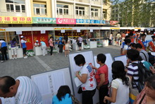 記者從商學院黨總支副書記褚才寬了解到,這次商學院共迎來746名新生,志愿者30余人,雖然對于這么多新生,志愿者顯得有些少,但這次迎新活動秩序非常好。今年的商學院比起往年有了很大不同,早上迎新的時候,有兩只商學院的吉祥物“尚尚”、“慧慧”陪伴大家,很好地宣傳了商學院文化。從昨天晚上,志愿者們就開始為新生準備手提袋,把所有資料都放進去,方便新生領取。在家長休息區,商學院還為家長們準備了電視,播放學校宣傳片、商學院文藝晚會,讓家長更好了解商學院。不辭辛苦的志愿者們還自己設計了宣傳欄,別具匠心。