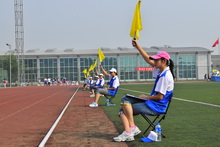 在“障礙迎面接力”的比賽場地,記者第一次感受了這項本次運動會的新項目帶給同學們的驚喜。上午10:40,迎著炙熱的驕陽,“障礙迎面接力”比賽開始。起點站10名女生,對面站10名男生,50米的賽道上設置了3個海綿墊和2個呼啦圈。參賽隊員要跨過海綿墊,轉過呼啦圈,將手中的接力棒傳給同伴,最先完成接力的隊伍獲勝。最終計算機與信息工程學院獲得冠軍。