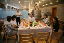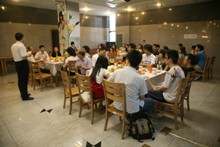 9月15日下午,學校為校舞蹈團在良鄉校區文科實踐中心一層餐廳舉辦慶功會,以慶祝他們的作品《校園變奏曲》在第7屆中國舞蹈“荷花獎”校園舞蹈大賽中獲得作品銀獎。黨委副書記盧思鋒、教務處處長張曉堂、體育與藝術教學部主任顧紅,副主任吳智鵬以及藝術團指導老師、教務處、團委等相關老師出席,校舞蹈團的全體同學以及合唱團、管樂團的部分代表參加此次慶功會。慶功會上還請到了《校園變奏曲》編導毛磊老師。這次慶功會分為座談會和慶功宴,團委書記呂良主持。