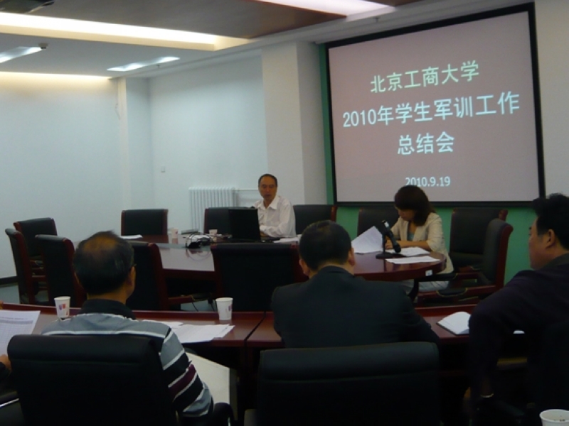 9月19日,學(xué)校2010年學(xué)生軍訓(xùn)工作總結(jié)會在阜成路二層?xùn)|會議室召開,參加會議的有校黨委副書記盧思鋒,2010年學(xué)生軍訓(xùn)指揮部各成員單位領(lǐng)導(dǎo)以及各學(xué)院副書記和輔導(dǎo)員代表。會議由學(xué)生處處長兼武裝部長呂素香主持。