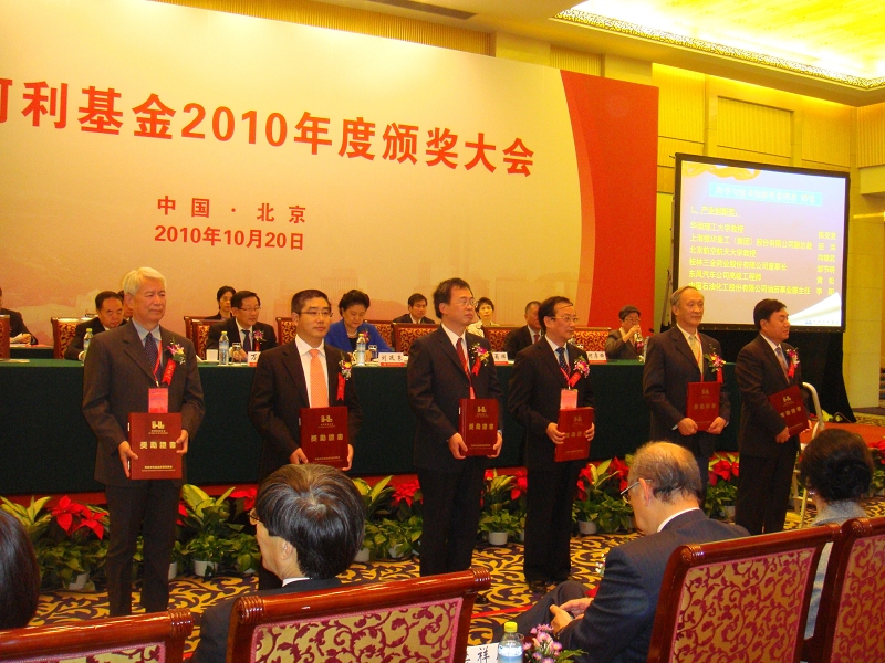 10月20日何梁何利基金2010年度科技獎頒獎大會在京隆重舉行,獎勵對我國科技做出突出貢獻的杰出科技人才。中共中央政治局委員、國務委員劉延東,全國人大副委員長路甬祥,全國政協副主席萬鋼、何厚鏵等黨和國家領導人及何梁何利基金捐款人代表出席大會。我校雙聘院士陳克復教授榮獲何梁何利基金科技創新獎。