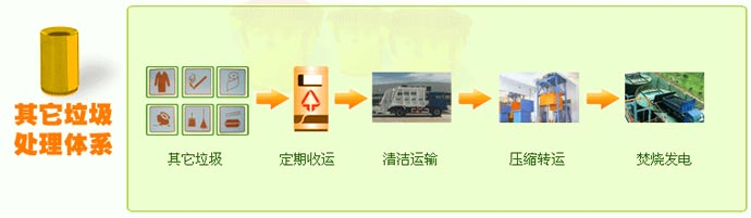 其它垃圾主要的處理途徑:可燃部分焚燒發電,不可燃部分衛生填埋。