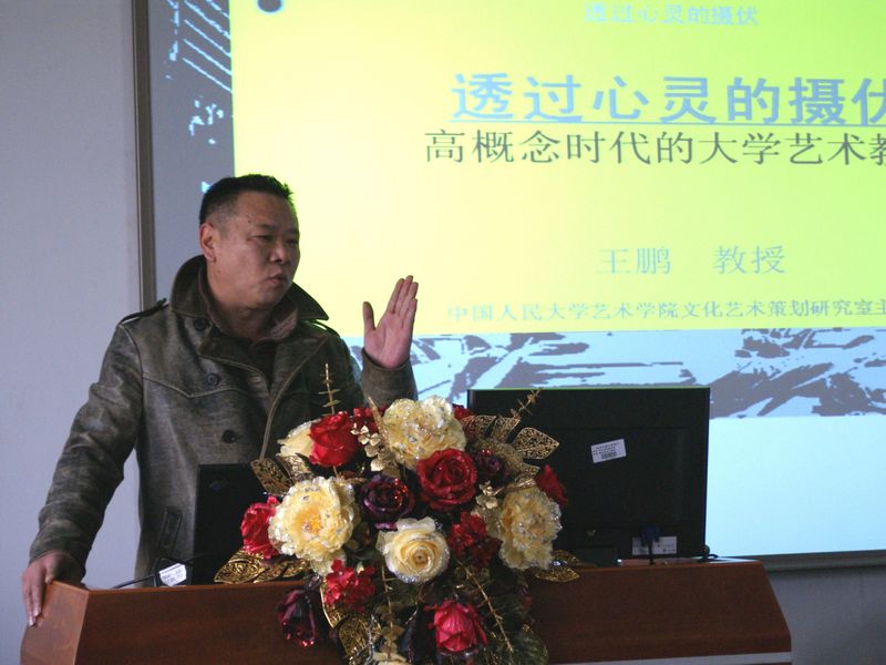 王鵬教授以“時代的藝術”為題,對藝術教學方法進行了研討。講座中,王鵬教授指出,面對新時代,藝術教學的藝術應該從藝術教學的策劃性、文化性、共情性、交響性、娛樂性、故事性、意義性和創新性這八個特點來深刻把握,并在實踐中實現“世界因時代而不同,時代因教育而不同,教育因我們而不同”的職業理想。