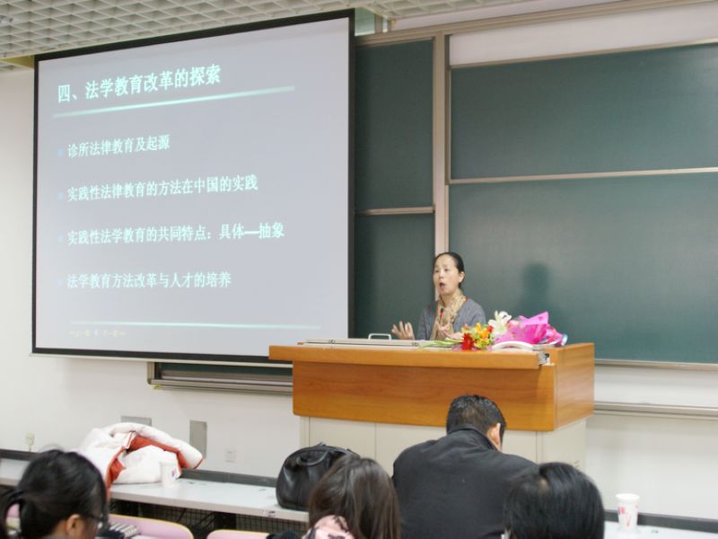 在講座中,陳教授分別從法學(xué)教育與人才培養(yǎng)、法律人才特點(diǎn)和教育困境、法學(xué)教育的改革和人才的培養(yǎng)、法學(xué)教育改革的探索四個方面進(jìn)行展開。深刻論述了關(guān)于我國的通式教育、法律人才的特殊性、目前教育模式的缺陷和困境等問題,并反復(fù)強(qiáng)調(diào)了自主學(xué)習(xí)的重要性和“學(xué)生是學(xué)習(xí)的主體”等重要觀點(diǎn)。