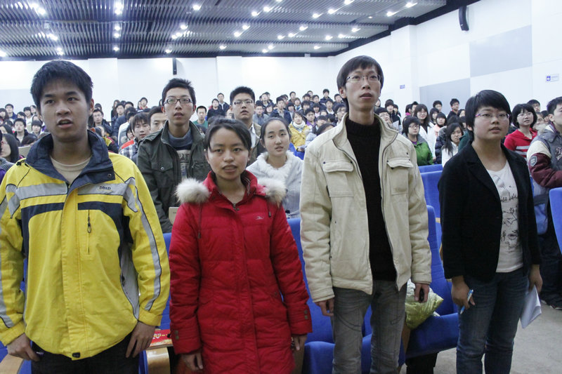 典禮在莊嚴的國歌聲中拉開了帷幕。經濟學院輔導員張宸宣讀了《北京工商大學黨校入黨積極分子培訓班管理規定》,并向所有分黨校學員強調了培訓期間的學員要求、組織紀律、考核評優等規定。接著,機械工程學院史奧珊同學代表本期培訓班學員發言,表達了參加分黨校學習的喜悅以及認真完成學習任務的態度和決心。經濟學院10級學生黨員李巖代表所有分黨校兼職輔導員承諾將以身作責、嚴于律己,努力完成此次培訓班的各項任務。最后開學典禮在莊嚴的國際歌中完滿落幕。