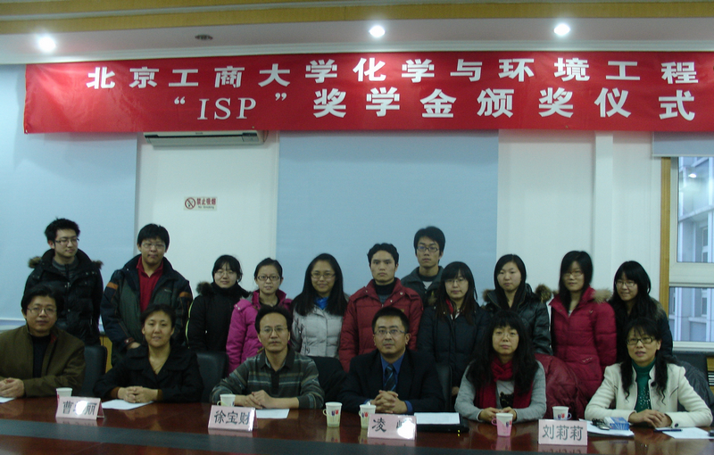日前,化學與環境工程學院各項社會獎學金頒獎儀式相繼舉行。繼“鐘香駒教授獎學基金”頒發之后,12月22日和23日,化學與環境工程學院在化工樓會議室分別頒發了“ISP”獎學金和“中國日化院”兩個專業獎學金。領先特品(上海)有限公司北亞地區個人護理產品技術服務經理凌峰先生及劉莉莉女士,中國日用化學工業研究院李秋小副院長,化學與環境工程學院院長兼書記徐寶財教授、副院長曹學麗教授及獲獎學生參加頒獎儀式。頒獎儀式由總支副書記何猛老師主持。