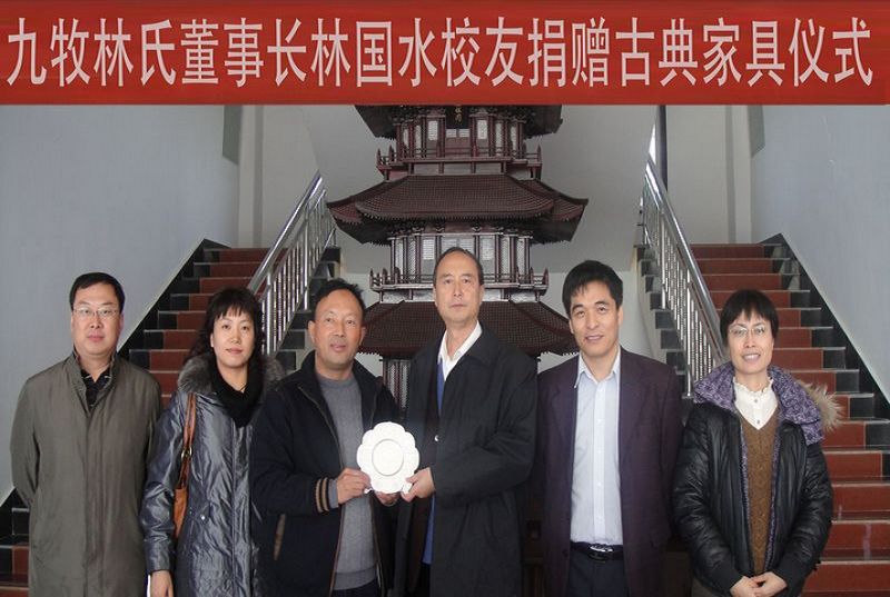 近日,九牧林氏古典家具有限公司董事長(zhǎng)林國(guó)水校友捐贈(zèng)的紅木家具送到學(xué)校。校黨委副書記、學(xué)校校友會(huì)常務(wù)副會(huì)長(zhǎng)、教育基金會(huì)理事長(zhǎng)盧思鋒出席捐贈(zèng)儀式。校辦主任吉濤,國(guó)資處處長(zhǎng)王曉華,校友會(huì)和教育基金會(huì)秘書長(zhǎng)張曉磊、副秘書長(zhǎng)王嘉彥參加儀式。