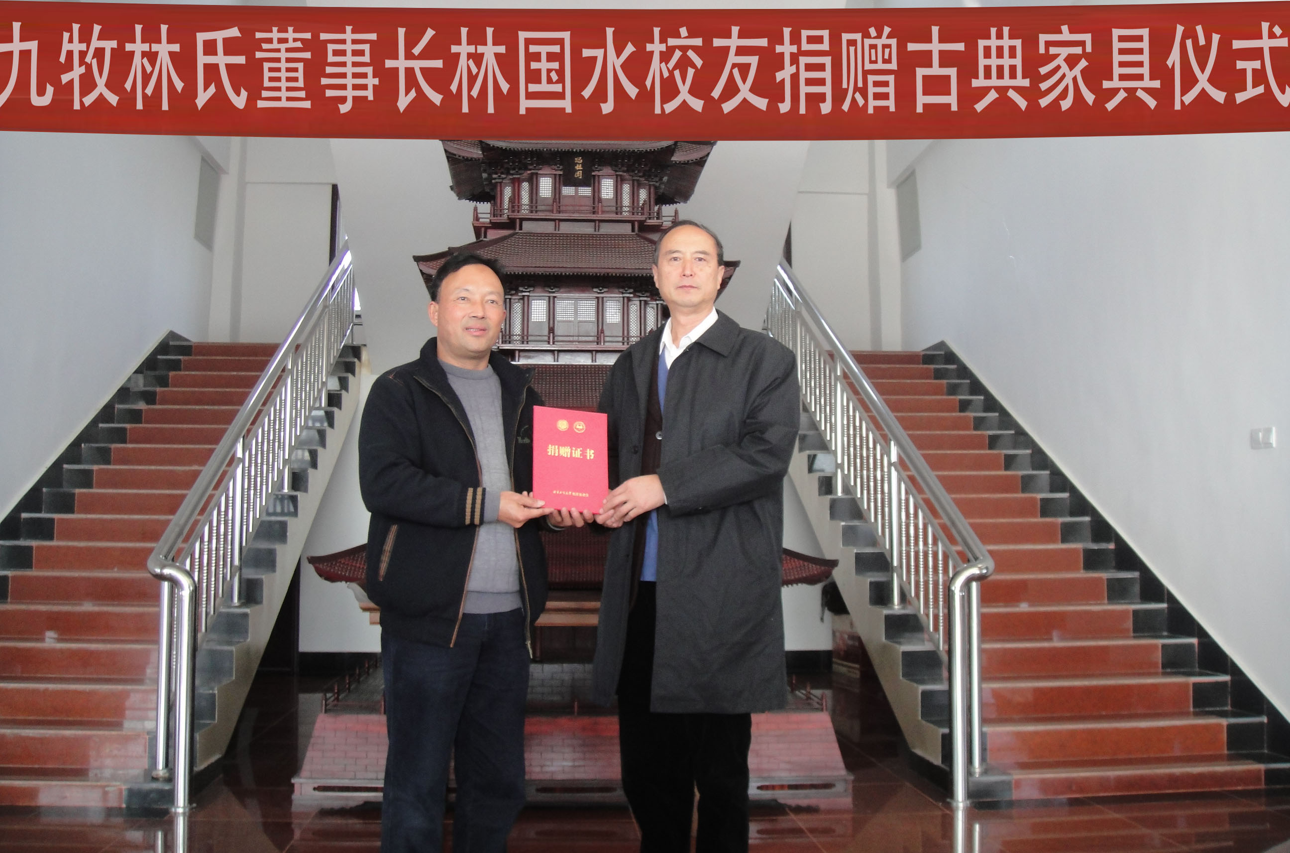 林國(guó)水校友介紹了九牧林氏(北京)建材市場(chǎng)有限公司和北京九牧林氏古典家具有限公司發(fā)展情況,感謝母校的培養(yǎng)。他說,11年前他學(xué)習(xí)了母校研究生班課程,受益極大,這十幾年來公司得到高速發(fā)展,這是和母校對(duì)自己的培養(yǎng)分不開的,作為校友,在自己有能力的時(shí)候回饋母校,支持學(xué)校的發(fā)展的時(shí)候,理應(yīng)奉獻(xiàn)。尤其是校慶期間參加母校的校慶活動(dòng),更是感受到了母校60年來的輝煌歷程,感受到學(xué)校在校領(lǐng)導(dǎo)的領(lǐng)導(dǎo)下蒸蒸日上勢(shì)頭,并表示,今后將繼續(xù)支持母校的建設(shè)和發(fā)展。
