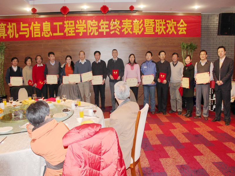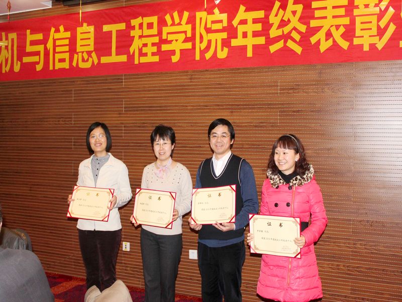 2010年,計信學院全體教職工積極努力,團結協作,認真完成了教學、科研和社會工作等各項任務,為學校和學院的發展做出了貢獻。為發揚成績,激勵先進,大會首先對2010年成績顯著的先進個人和先進集體進行了表彰。此次表彰共設九個獎項:教學成果獎、科研貢獻獎、優秀學術論文獎、學科建設成果獎、校慶工作先進個人獎、指導學生學科競賽先進個人獎、優秀班主任獎、學術活動優秀組織獎、實驗室建設優秀個人獎。共計64名老師和3個系獲得了以上獎項。