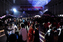 動(dòng)感的多人現(xiàn)代舞再次激勵(lì)了同學(xué)們,還在座位上的觀眾按捺不住激情紛紛進(jìn)入舞池與舞者一同跳舞。新穎的《甩蔥舞》,以幽默的形式,讓現(xiàn)場(chǎng)同學(xué)都揮舞起了手中的熒光棒,歡快地舞動(dòng)、轉(zhuǎn)圈。最后,現(xiàn)場(chǎng)的所有觀眾及工作人員伴隨著兔子舞的音樂(lè)在舞池內(nèi)圍成一個(gè)多層的大圈,盡情跳動(dòng)。
