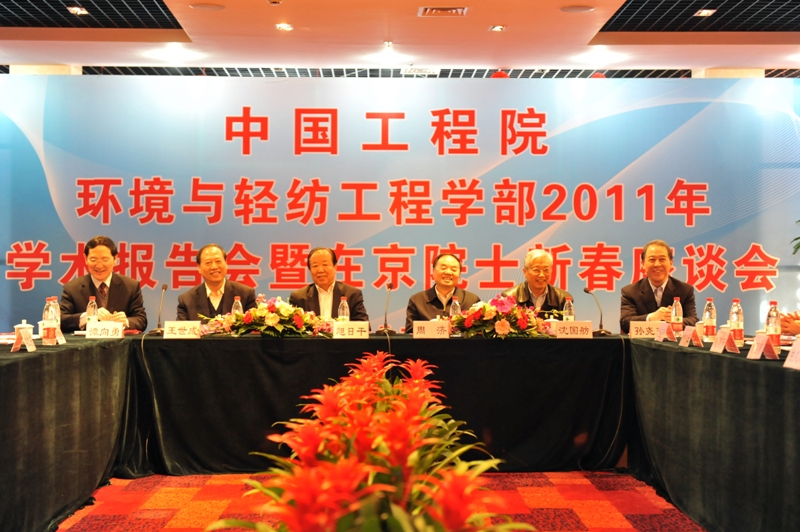 1月21日下午,北京工商大學(xué)蓬蓽生輝,中國工程院院長周濟(jì)、副院長旭日干、原副院長沈國舫、環(huán)境學(xué)部在京院士陳聯(lián)壽、丁一匯、顧夏聲 、郝吉明、侯立安、季國標(biāo)、金鑒明、李澤椿、劉鴻亮、孟偉、龐國芳、錢易、曲久輝、任陣海、孫寶國、湯鴻霄、唐孝炎、王文興、魏復(fù)盛、徐祥德、許建民、 張懿、周國泰和中國輕工業(yè)聯(lián)合會副會長王世成來到我校,參加2011年中國工程院環(huán)境學(xué)部學(xué)術(shù)報告會暨在京院士新春座談會。校黨委書記孫堯東、校長譚向勇、副校長孫寶國代表學(xué)校對各位領(lǐng)導(dǎo)、院士及專家的蒞臨表示熱烈的歡迎。會議由中國工程院院士、環(huán)境學(xué)部主任郝吉明主持。