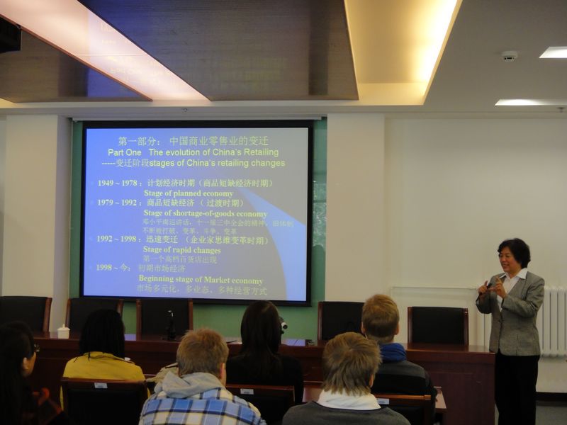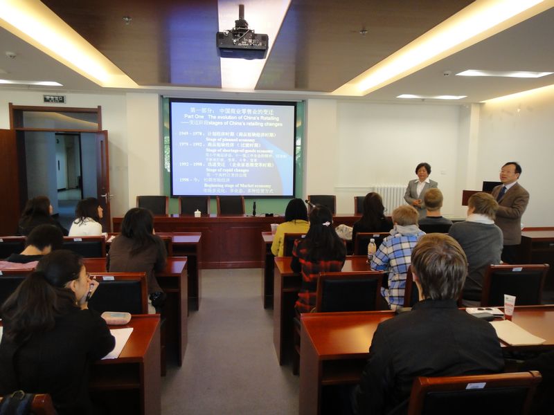 4月11日上午,中國商業(yè)聯(lián)合會副會長萬文英女士在阜成路校區(qū)給大家?guī)硪粓鲱}為“中國零售業(yè)現(xiàn)狀與發(fā)展”的精彩講座,講座由國際交流與合作處羅朝能處長主持并現(xiàn)場翻譯。我校商科方向的外國留學(xué)生、研究生、本科生以及部分教師參加了講座。該講座由國際交流與合作處與研究生部共同主辦。