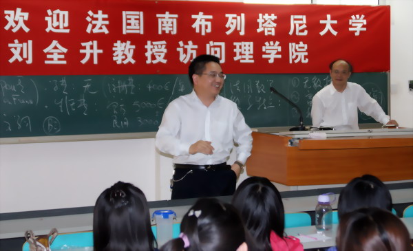 隨后,劉全升教授為理學院08、09級學生作了《數學教育在法國》的主題講座。講座后,劉教授與學生進行了互動交流,此次報告會和交流會在熱烈的氣氛中持續了整整兩個小時,同學們感到受益匪淺。