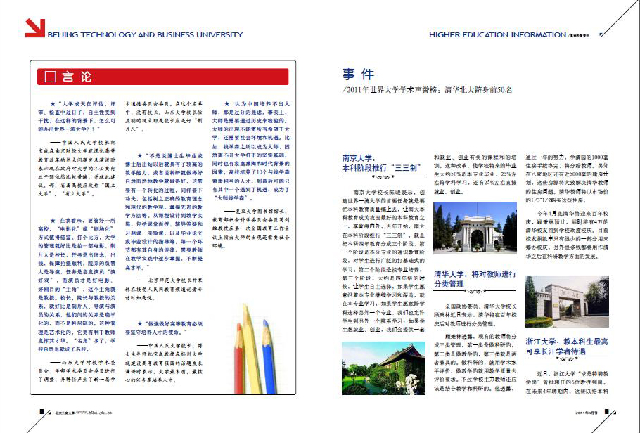 《高等教育資訊》為月刊,以“關注國內外高等教育,傳播先進教育理念”為創刊宗旨,主要包括高教資訊、熱點掃描、專題策劃、訪談實錄及網友熱議等專欄,通過不同的觀點言論、熱點事件及數字新聞等形式來傳達高等教育的熱點資訊,輔以大量圖片,同時以不同的高教熱點問題為每期專題策劃的討論內容,力求印刷精美,內容豐富,形式活潑。