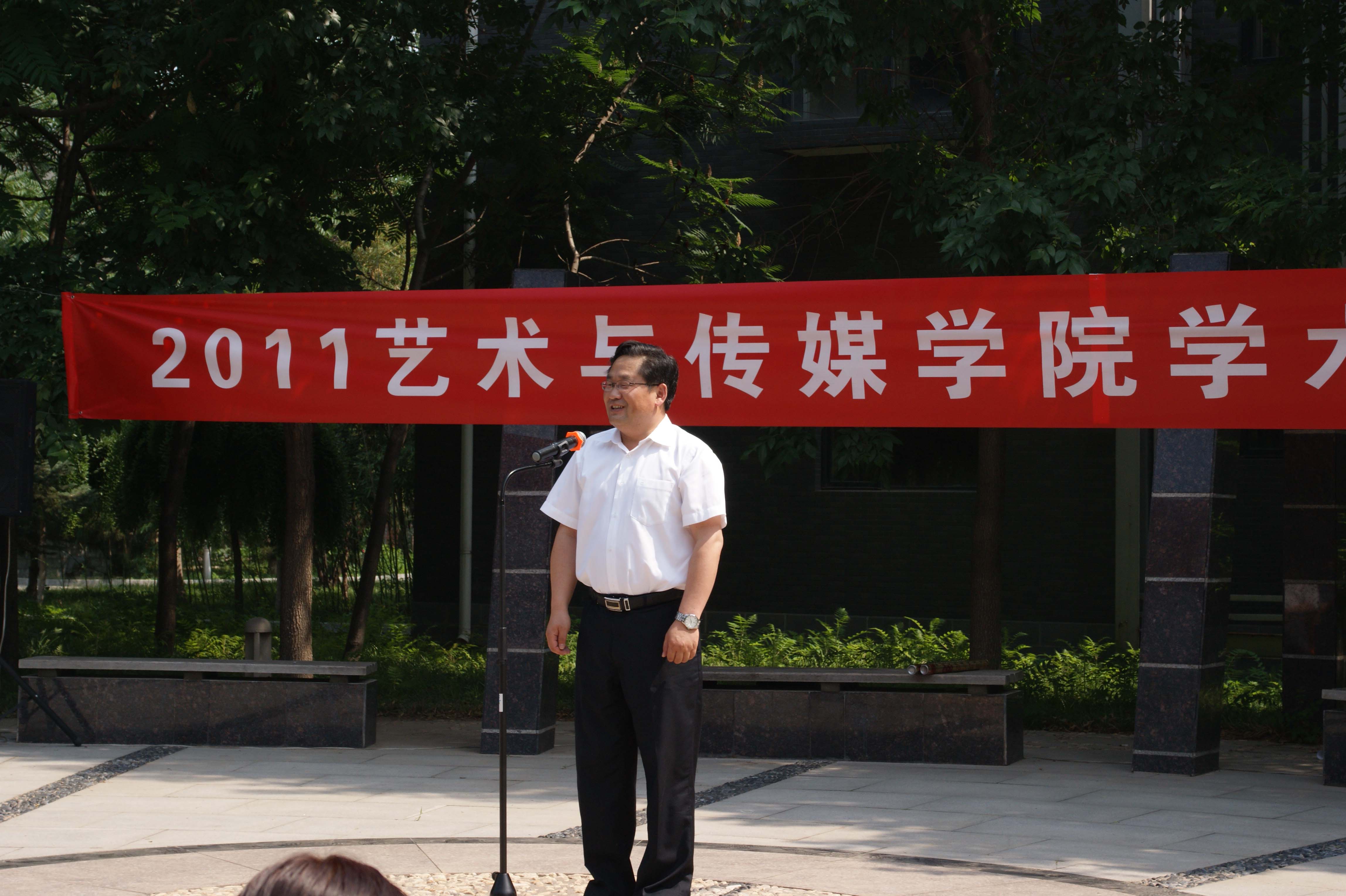 6月13日,喜迎建黨九十周年之際,經過各系師生緊張而充分的準備,藝術與傳媒學院2011年學術藝術周在藝術樓B座前小廣場上隆重開幕。出席本次開幕式的領導和嘉賓有:我校黨委張德玉副書記,校團委郭新愿副書記,北京工業設計促進中心主任兼北京工業設計協會秘書長宋慰祖,北京工程圖學會秘書長尚鳳武,北京郵電大學工業設計系主任侯文君教授,北京航空航天大學工業設計系馬金盛副教授,北京林業大學工業設計教研室主任程旭峰,北京信息科技大學工業設計系主任高炳學教授。 學院沈毅院長、黨總支書記秦巍老師、副院長羅子明教授和張翔教授,以及梁珣、孫進、李嶺、張帆老師等師生代表均參加了此次活動,黨總支副書記楊艷萍老師主持了開幕式。