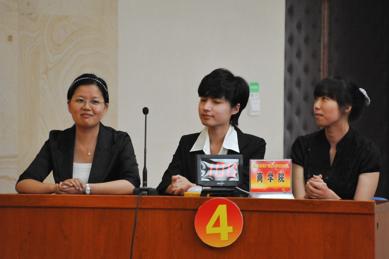 在初賽第一場中,由來自經濟學院、材料與機械工程學院、食品學院、商學院、理學院、研究生部一隊的六支代表隊進行角逐。在現場,每當選手能立即清晰流暢地說出正確答案,主持人也給出了“完全正確”的答復時,就陣陣響起同學們為自己學院的代表隊加油助陣的掌聲。經過激烈角逐,研究生部一隊、商學院、理學院代表隊分別位列初賽第一場的前三名晉級進入決賽。經濟學院、材料與機械工程學院、食品學院代表隊獲得競賽優秀獎,馬克思主義學院黨總支書記張秀芬為獲得優秀獎的參賽隊員頒獎。
