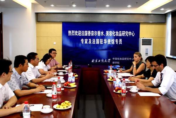 理學院領導班子和相關領域的專家會見了來賓。理學院院長曹顯兵教授向來賓介紹了學校的發展狀況及理學院、中國化妝品研究中心未來的發展前景,表示到2013年將在良鄉校區建成并投入使用新的理學大樓,教學、科研、研發從硬件方面將有一個飛躍,檔次也更高。他對法方專家和科技專員來訪理學院表示歡迎,希望今后通過相互的合作和交流彼此更加了解,特別是在化妝品領域創造更好的發展和社會效益。