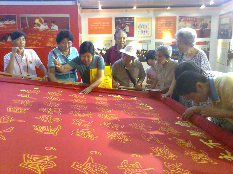 在參觀臨結束時,大家紛紛把自己寫有對黨無限深情、對黨表決心的紅色《百萬黨員寄心語》明信片投入現場信箱。大家還來到《入黨誓詞》大型刺繡絨布前,爭先恐后拿起繡針,親手為入黨誓詞繡上一針,表達出自己對黨的無限忠誠,永遠跟黨走的堅定信念!