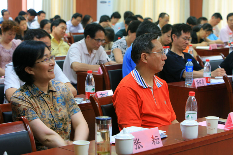 校長譚向勇在講話中從九個方面對本學期工作進行了回顧與總結,一是完成了學校“十二五”時期事業發展規劃編制工作。學校十二五總規劃及六個子規劃將下發每位中層干部、每個單位,希望各部門針對具體指標制定具體措施,做好本部門規劃,確保學校“十二五”時期事業發展總體目標的實現。二是順利舉辦各類大型活動。第三屆雙代會、第九屆運動會、學生畢業典禮、慶祝中國共產黨成立90周年系列活動等都達成了預期目標,活動成效明顯。三是學科建設布局工作基本完成。學校9個學院1個部的框架基本確定,各學院要加快凝練學科優勢,加快科研團隊建設,努力提高學科建設質量。四是科研發展勢頭良好。學校制訂、完善了科研管理規章制度,進一步調動了教師開展科研的積極性,今年國家社科基金項目立項在市屬高校中名列前茅,橫向課題經費繼續實現快速增長。五是教學和學生工作取得進展。開展了教學優秀獎評選活動、修訂了教學管理規章制度。開展“春風行動”加強學風建設,學生在各級各類競賽中獲得了較好的成績;研究生管理更加規范。六是組織人事工作穩步推進。加強了人才引進工作,開展了多種培訓,培訓效果良好。七是財務管理進一步精細化,收入支出預算執行情況較好。八是后勤、基建和國有資產管理工作取得明顯進展。節約型校園建設取得了明顯的成效,二期工程建設的前期準備工作正加緊進行,資產管理信息化取得進展。九是更加關注民生問題。學校安排組織教職工體檢,調整了校內績效工資,繼續進行房產證辦理,設立了“校長助學金”加大對研究生的資助力度。譚校長充分肯定了上半年學校各項工作的成績,對相關工作提出了要求,并希望教職員工更加關注自己的身體健康,養成良好的生活習慣。