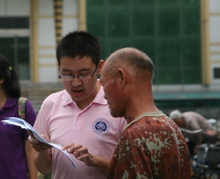 更令同學們振奮的是今天校黨委副書記盧思鋒帶領慰問團及5家媒體,來到了同學們的實踐現場進行參觀慰問。帶著校領導們的親切關懷和對同學們的無限期待,盧思鋒副書記首先參觀了同學們制作的宣傳展板,并與宣傳小組同學們親切交談。校領導們詢問了同學們實踐的情況和感受,并對我們展板的話題產生了濃厚的興趣。隨后,領導們又跟隨第二組的同學們一同走入居民家中,進行空氣、水質及食品專門的抽樣檢測,同時也跟居民全先生針對實踐活動及居民所需進行了一番懇切的交談。盧思鋒副書記親切誠懇的談話,居民們熱情誠摯的回饋,讓在場師生受益頗豐。5家媒體也對我們有專業特色的實踐活動十分關注,進行了實地采訪及拍攝。
