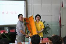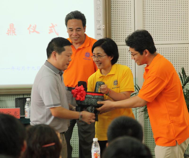 張耘副校長代表我校向什邡市教育局贈送了紀念品,向南泉道平中學贈送了寓意“攜手共建,共創未來”的鼎,并接受了該校回贈三星堆青銅立人像(工藝品)。捐贈儀式后,張耘同志作了簡短講話,指出,北京工商大學非常重視青年教師暑期社會實踐考察團赴南泉道平中學開展智力援建活動。這是一次愛的傳遞,體現了人性中的真善美,并希望兩校之間的交流一代代延續下去。同時,今年恰逢建黨90周年,青年教師通過震區及震區教育的巨變親身感受黨的恩情和社會主義制度的優越性,意義重大。她希望兩校間的友誼長存。
