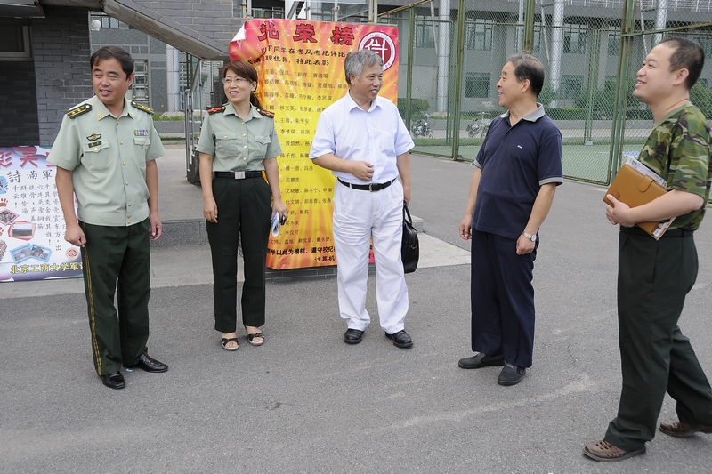 座談結束后,張建國一行在孫堯東書記、盧思鋒副書記的陪同下來到軍訓操場,現場觀看了新生軍訓情況。