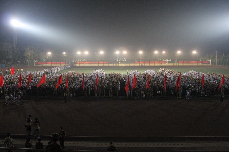 醒目的營連旗帶隊,嘹亮的行軍歌伴隨,3000余名新生個個士氣高昂,在夜幕中矯健前行。軍訓團總指揮、黨委副書記盧思鋒,軍訓團團長張義中校,學生處處長兼軍訓團政委呂素香,保衛處處長兼軍訓團副總指揮頓勁松,及指揮部其他成員出席了出征儀式。各學院輔導員及所有參訓官兵陪同參訓學員一起走完全程。