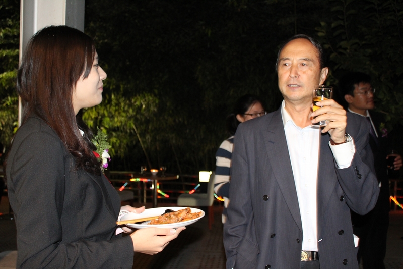 冷餐會上,同學(xué)們或在室外陽臺上享用別具風(fēng)味的燭光晚餐,或參觀校長樓,或抓住時機就自己關(guān)心的話題與校領(lǐng)導(dǎo)深入交談。與校領(lǐng)導(dǎo)共進(jìn)晚餐,近距離親切交流,同學(xué)們感到非常興奮和高興。
