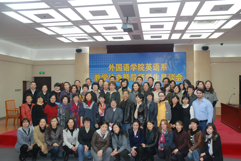 前去主持全校大學英語期中教學座談會的楊懷恩院長、張衛晴副院長也及時趕來參加了會議。會后,外國語學院全體導師在大會現場合影留念。