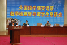 11月2日下午,外國語學院為配合期中教學檢查,在良鄉校區模擬法庭隆重召開導師與學生懇談會。學院黨政領導、英語系全體導師及2009級、2010級、2011級英語專業同學參加了會議。