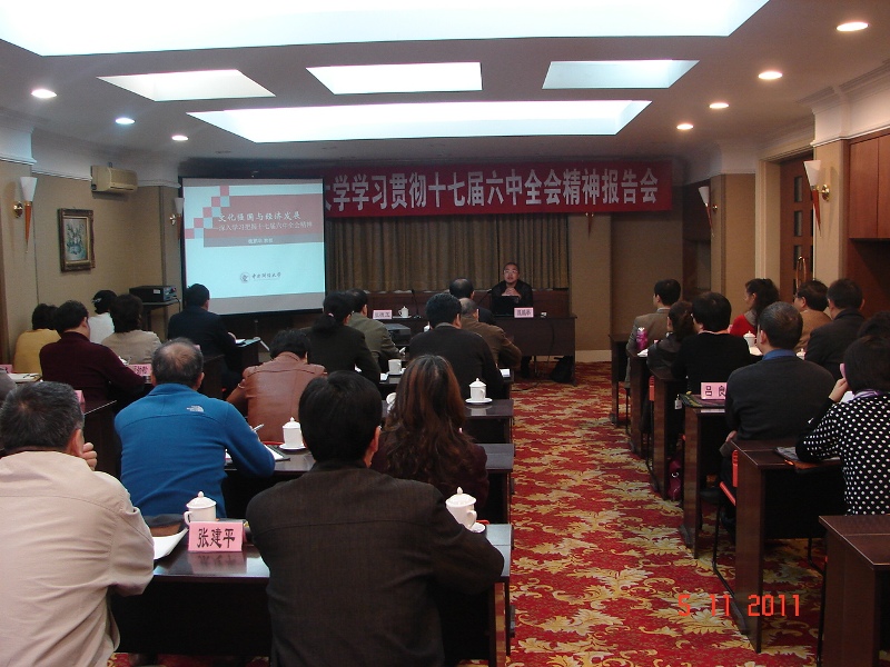 會議聽取了中央財經大學宣傳部部長魏鵬舉教授所作的題為《文化強國與經濟發展》的學習十七屆六中全會精神專題報告。