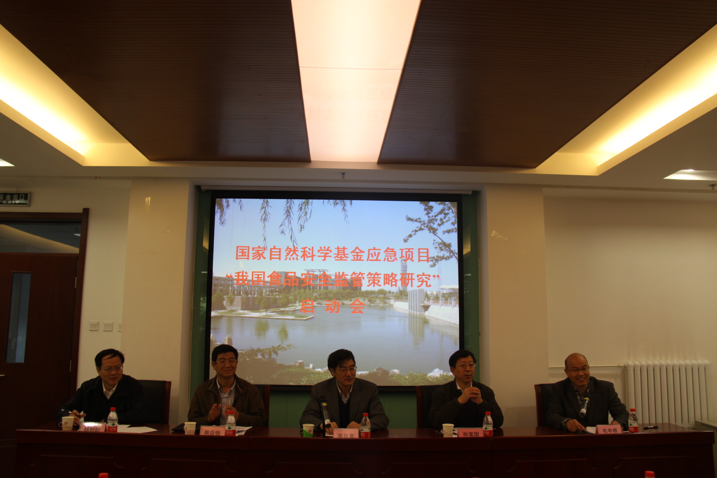 11月10日,國家自然科學基金委員會管理科學部主任基金2011年第3期應急項目“我國食品安全監(jiān)管策略研究”項目啟動會在我校阜成路校區(qū)綜合樓召開,國家自然科學基金委員會管理科學部副主任高自友、管理科學部三處處長楊列勛、辦公室宣傳處副處長沈林福、管理科學部三處鐘永光、毛中根、該項目負責人我校工程院院士孫寶國副校長和南京農(nóng)業(yè)大學周應恒教授以及來自全國各高校的12個子課題負責人、相關項目組成員共40多人出席了本次啟動會。