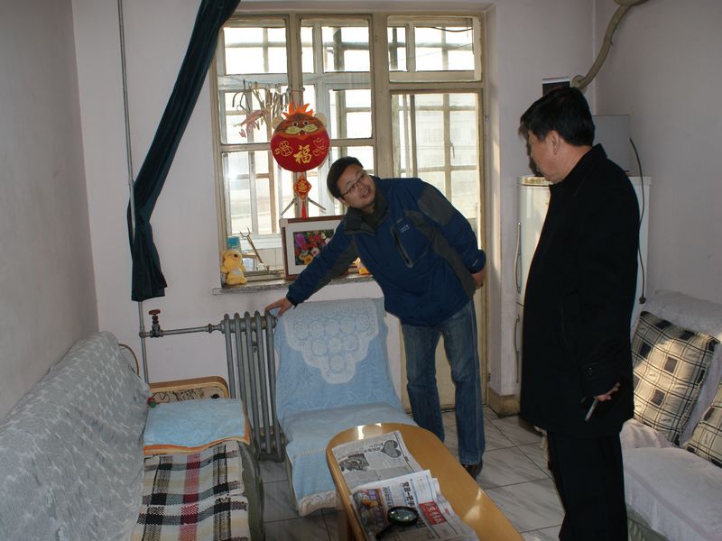 正式供暖一周后,為及時了解供暖情況,關心離退休人員的家庭生活,離退休黨總書記龐春生、后勤管理處處長盧燦寬帶領工作人員對部分離退休人員進行了走訪,了解住宅供暖情況。