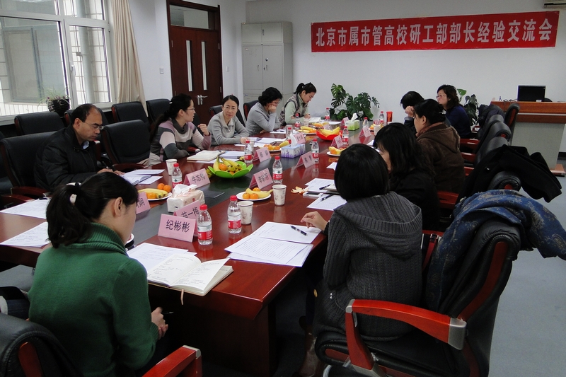 11月29日上午,北京市市屬市管高校研工部部長經驗交流會在我校阜成路西校區召開。本次交流會由我校研工部牽頭組織,旨在交流各高校的研思政工作情況,以及在落實教思政【2010】11號文件(《教育部關于進一步加強和改進研究生思想政治教育的若干意見》)中的經驗,進一步推進市屬市管高校研究生思想政治教育工作。參會的有北京工業大學、首都師范大學、首都經貿大學、北京物資學院、北京信息科技大學、北京建筑工程學院、北京農學院、北京服裝學院等兄弟院校的研工部部長和研思政負責人。謝志華副校長也到會與大家親切交談。會議由研究生部黨總支書記兼研工部部長董竹娟主持,黨總支副書記兼研工部副部長熊慧和研究生部輔導員老師參加會議。