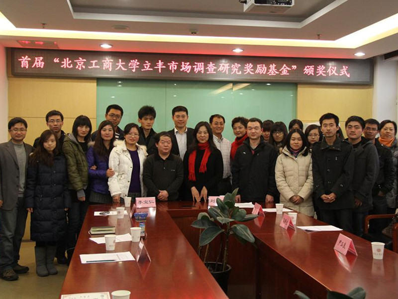 12月2日下午,首屆“立豐市場調查獎勵基金”頒獎儀式在阜成路校區舉行。經濟學院黨總支書記李寶仁教授、副院長李書友副教授、立豐市場調查獎勵基金出資人劉立豐先生、益普索大中華區首席市場官王卿蕓女士、益普索大中華區研究部主任高保生博士及統計系有關老師出席。本屆立豐市場調查獲獎者及統計系研究生參加了此次頒獎儀式,頒獎儀式由統計系副主任羅玉波主持。