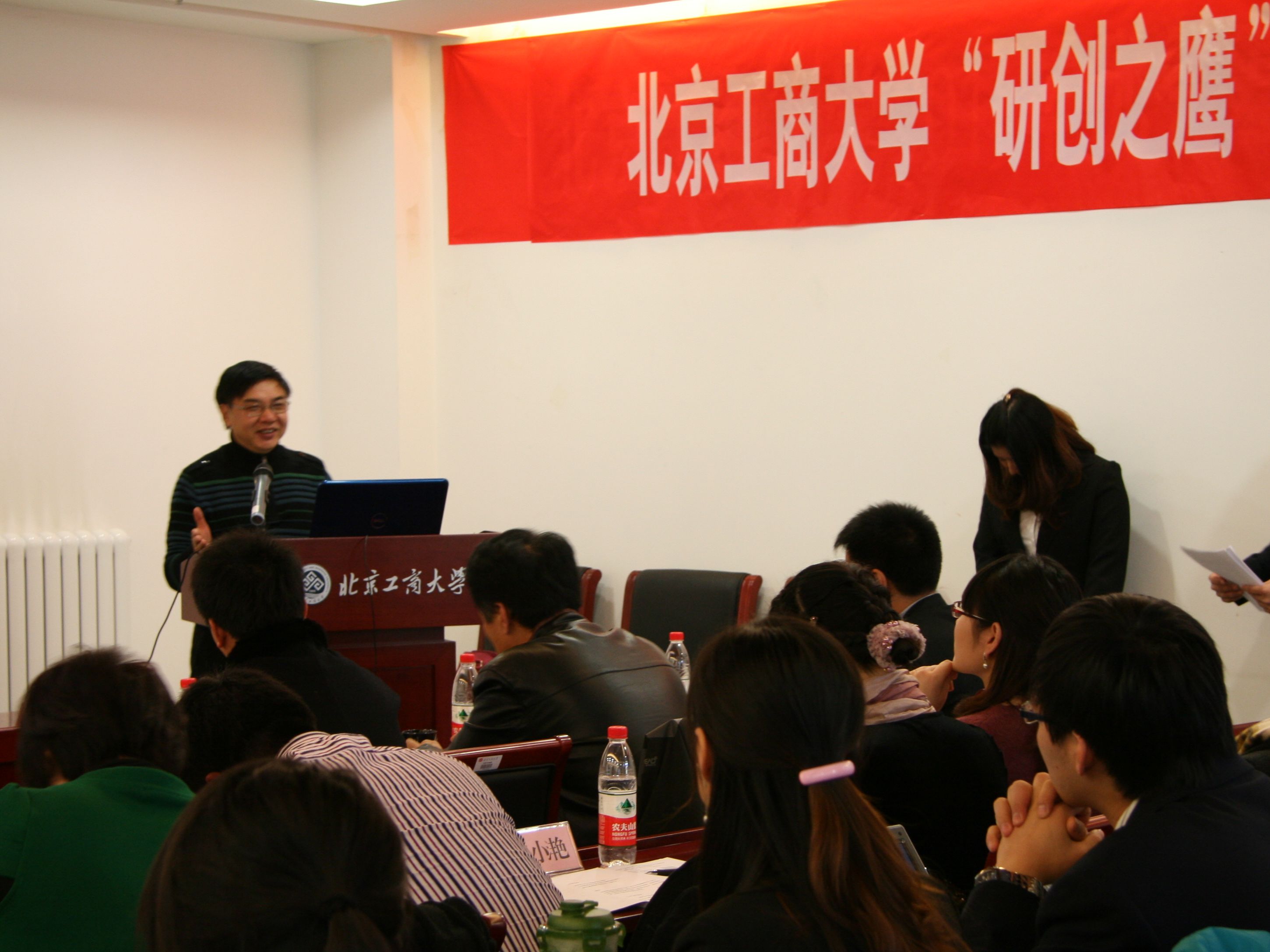楊有紅院長在開幕致辭中指出,商學院十分重視這次比賽,本次比賽集合了各方的力量,歷時一個多月,覆蓋阜成路校區、良鄉校區、嘉華學院,參賽者包含了來自多個專業的本科生、研究生和MBA學生,有將近40支隊伍報名參賽,在全校范圍形成了不小的影響力。經過前期的激烈角逐,共有12支隊伍進入了決賽。我校的學生不僅要學習書本上的理論知識,更要多參與實踐,創業比賽鼓勵創新,同時能充分鍛煉學生的能力,學以致用。希望比賽能越辦越大,走出工商,將來吸引更多的學校參與。