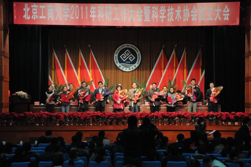 2011年是中國(guó)共產(chǎn)黨成立90周年,學(xué)校組織開展了豐富多彩的紀(jì)念活動(dòng)。學(xué)校于5月31日和6月15日分別舉辦了“五月的鮮花、特殊的黨日”千人大合唱和教職工大合唱。學(xué)校各單位認(rèn)真組織黨史知識(shí)學(xué)習(xí),6月24日,學(xué)校舉辦了紀(jì)念建黨90周年黨史知識(shí)競(jìng)賽。各黨總支、直屬黨支部開展了豐富多彩的黨日活動(dòng)。7月1日,學(xué)校隆重召開慶祝中國(guó)共產(chǎn)黨成立九十周年大會(huì),表彰了學(xué)校先進(jìn)基層黨組織、共產(chǎn)黨員標(biāo)兵、優(yōu)秀共產(chǎn)黨員和優(yōu)秀黨務(wù)工作者;播放了學(xué)校編輯和拍攝的視頻《光輝歷程》和《時(shí)代先鋒》。學(xué)校繼續(xù)深入開展創(chuàng)先爭(zhēng)優(yōu)活動(dòng),開展了教工黨支部書記培訓(xùn)、“最佳黨日活動(dòng)”評(píng)選、優(yōu)秀基層黨建工作創(chuàng)新項(xiàng)目評(píng)選等等。學(xué)校獲得“北京市紀(jì)念建黨90周年宣傳工作先進(jìn)集體”和“北京高校黨建研究會(huì)2008-2010年度學(xué)會(huì)工作先進(jìn)單位”榮譽(yù)稱號(hào)。 ■群策群力編制“十二五”規(guī)劃 學(xué)校發(fā)展步入新階段 《北京工商大學(xué)“十二五”事業(yè)發(fā)展規(guī)劃》編制工作,歷時(shí)九個(gè)月,經(jīng)過廣泛調(diào)研、全員參與、反復(fù)推敲、數(shù)易其稿,其主規(guī)劃及五個(gè)子規(guī)劃(討論稿)于2011年4月提交第三屆教職工代表大會(huì)暨工會(huì)會(huì)員代表大會(huì)討論。學(xué)校于2011年5月頒布了《北京工商大學(xué)十二五事業(yè)發(fā)展規(guī)劃》及若干子規(guī)劃,為學(xué)校未來五年發(fā)展描繪了宏偉藍(lán)圖。 ■啟動(dòng)本科教學(xué)綜合改革和評(píng)選教學(xué)優(yōu)秀教師 推進(jìn)教學(xué)質(zhì)量工程建設(shè)取得新成效 11月25日,學(xué)校召開了2011年度本科教學(xué)綜合改革會(huì)議。孫堯東書記和譚向勇校長(zhǎng)分別作了重要講話,李朝鮮副校長(zhǎng)作以“強(qiáng)力推進(jìn)本科教學(xué)綜合改革、全面提高人才培養(yǎng)質(zhì)量”為主題的報(bào)告,四位專家分別作專題報(bào)告。與會(huì)的各級(jí)領(lǐng)導(dǎo)和教師代表、教學(xué)督導(dǎo)專家一致認(rèn)為,在學(xué)校進(jìn)入內(nèi)涵發(fā)展的歷史階段進(jìn)行本科教學(xué)綜合改革,對(duì)提升我校教學(xué)水平和人才培養(yǎng)質(zhì)量有重大意義;本科教學(xué)綜合改革是系統(tǒng)工程,所有教師要充分認(rèn)識(shí)教學(xué)綜合改革的意義,各教學(xué)單位要理清思路,制定方案,找準(zhǔn)改革突破點(diǎn),強(qiáng)力推進(jìn)教育教學(xué)改革。 為鼓勵(lì)在教學(xué)改革和教書育人工作中做出突出貢獻(xiàn)的專任教師,培養(yǎng)一批教學(xué)骨干,進(jìn)一步推動(dòng)我校教育教學(xué)改革,提高人才培養(yǎng)質(zhì)量,學(xué)校開展2011年教學(xué)優(yōu)秀獎(jiǎng)評(píng)選系列工作。經(jīng)過學(xué)院推薦、教務(wù)處審核、學(xué)院評(píng)選、分學(xué)科遴選、教學(xué)展示評(píng)選等環(huán)節(jié),共評(píng)選出10名教師獲得教學(xué)優(yōu)秀一等獎(jiǎng)、30名教師獲得教學(xué)優(yōu)秀二等獎(jiǎng),有力地促進(jìn)了教師對(duì)教學(xué)工作的重視,調(diào)動(dòng)了廣大教師的工作積極性。 ■科研項(xiàng)目和科研經(jīng)費(fèi)持續(xù)增長(zhǎng) 科技工作再上新臺(tái)階 2011年3月,“原味濃縮肉湯生產(chǎn)技術(shù)”榮獲教育部科技進(jìn)步一等獎(jiǎng)。2011年4月,我校三項(xiàng)目獲得2009年北京市科學(xué)技術(shù)獎(jiǎng),其中二等獎(jiǎng)1項(xiàng),三等獎(jiǎng)2項(xiàng)。2011年我校科研項(xiàng)目申報(bào)立項(xiàng)和獲批數(shù)量比去年有了新增加:獲批國(guó)家社科基金8項(xiàng),其中重點(diǎn)項(xiàng)目1項(xiàng);獲批國(guó)家自然科學(xué)基金22項(xiàng),教育部人文社會(huì)科學(xué)研究一般項(xiàng)目13項(xiàng),北京市哲學(xué)社會(huì)科學(xué)規(guī)劃項(xiàng)目9項(xiàng),北京市自然科學(xué)基金11項(xiàng),北京市教委重點(diǎn)項(xiàng)目4項(xiàng),獲批總量比去年增加39.2%。2011年底我校科研總經(jīng)費(fèi)超過1.3億元,其中課題經(jīng)費(fèi)達(dá)到5500萬元,科研經(jīng)費(fèi)比去年增長(zhǎng)19.8%。 學(xué)校還積極主辦或承辦首都現(xiàn)代服務(wù)業(yè)發(fā)展論壇、中國(guó)商業(yè)經(jīng)濟(jì)學(xué)會(huì)第七次會(huì)議、第23屆亞太地區(qū)國(guó)際會(huì)計(jì)專題研討會(huì)等學(xué)術(shù)活動(dòng)和各種學(xué)術(shù)報(bào)告活動(dòng),學(xué)術(shù)氛圍日趨濃厚,學(xué)校科技工作再上新臺(tái)階。