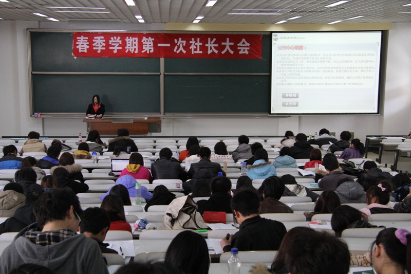 作為校園文化建設的重要載體,學生社團工作一直是我校學生工作的重要部分。為充分發揮學生社團在促進校園文化建設、活躍校園文化氛圍方面的積極作用,校團委于3月14日組織召開我校各社團主要學生干部大會。