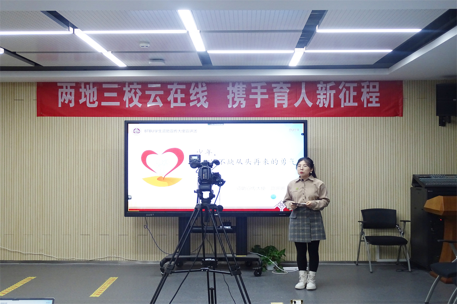 自2018年以來,學校每年選派學生資助宣傳大使前往“學生資助宣傳大使實踐基地”——河北蔚縣西合營中學、桃花鎮初級中學進行包括宣講在內的多種實踐活動,這是我校資助育人工作的重要環節。今年,在疫情防控常態化背景下,我校首次采取線上直播方式開展宣講活動。