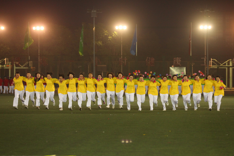 首先上場的是教職工千人廣播操陣容,包括方德英副校長在內的1004名教職工和離退休老同志,分為白、粉、綠、紅、藍五色方陣;精神抖擻、朝氣蓬勃,和著鏗鏘的節拍,踏著整齊的步伐,伸展著矯健的身姿,用行動詮釋著“快樂工作,幸福生活”的理念。他們出色的表現,不時激起現場熱烈的掌聲。
