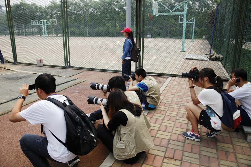 賽場(chǎng)周?chē)€有一道不能忽視的風(fēng)景:身著卡其色馬甲或白色T恤、扛著“長(zhǎng)槍短炮”或手拿紙筆,奔走于各個(gè)項(xiàng)目現(xiàn)場(chǎng)、四處問(wèn)詢(xún)的同學(xué)——他們是來(lái)自校園電視臺(tái)和校園網(wǎng)新聞中心的記者,正在記錄著賽場(chǎng)上的精彩瞬間。廣播站的廣播員們也犧牲了自己的休息時(shí)間,全天候播報(bào)比賽成績(jī)、選讀觀眾來(lái)稿,激勵(lì)著運(yùn)動(dòng)員與各院拉拉隊(duì)。