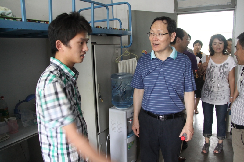 在生活區(qū)宿舍,大家走訪了生活區(qū)5個組團,校領導詳細詢問了回購后各項工作的進展,對回購領導小組成員單位學校辦公室、國資處、審計處、財務處、紀檢監(jiān)察處、后勤管理處、規(guī)劃建設處、檔案館等部門的同志前期所做的大量工作給與了充分肯定。目前生活區(qū)回購后各項交接工作正有序、順利進行,生活區(qū)外墻、組團大門及護欄的粉刷工作基本完成,各學生宿舍已配備了電扇。走訪中,校領導對學生公寓的功能、區(qū)域規(guī)劃、綠化美化、文化環(huán)境建設等提出了要求,看望了留守學校的學生,強調(diào)有關部門要抓緊完成宿舍粉刷和基本用具配備,抓緊做好所有廣告牌拆除、組團的美化設計、相關修繕改造工程的實施、綠化點綴等工作。呼文亮副校長對暑期后續(xù)各項工作進行了分工和強調(diào),要求強化落實,把各項工作做細、不留死角,以學生為本,精益求精,創(chuàng)造出優(yōu)質(zhì)的服務、優(yōu)美的環(huán)境,以新的狀態(tài)迎接新學期的到來。