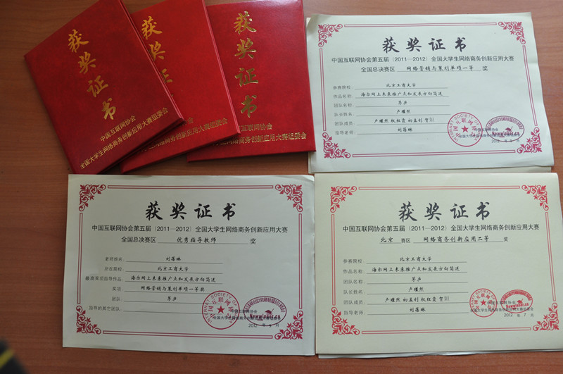 計(jì)信學(xué)院對(duì)全國大學(xué)生網(wǎng)絡(luò)商務(wù)創(chuàng)新應(yīng)用大賽高度重視,本次共組織了五個(gè)隊(duì)參加比賽。在劉蓓琳老師的認(rèn)真指導(dǎo)和同學(xué)們的努力下,由初孟釗、付啟超、董超、唐樂、劉巖同學(xué)組成的取信天下隊(duì)獲得北京賽區(qū)網(wǎng)絡(luò)商務(wù)創(chuàng)新應(yīng)用二等獎(jiǎng),由初孟釗、賀姮、盧瑾然、權(quán)紅霞同學(xué)組成的茅廬隊(duì)通過網(wǎng)絡(luò)評(píng)選和專家投票,殺入全國總決賽,最終獲得了全國總決賽網(wǎng)絡(luò)營銷與策劃單項(xiàng)一等獎(jiǎng)的好成績。