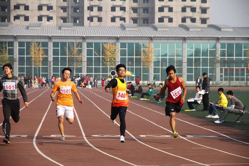 百米賽跑一直是誕生飛人之戰(zhàn),選手如獵豹般的矯捷、飛鳥般的輕盈使賽事極富觀賞性。飛人不是一夜煉成的,賽場上翱翔的雄鷹亦是經(jīng)歷無數(shù)次磨練。藝傳學院的金澤同學于小組賽中拔得頭籌,他遙遙領(lǐng)先的背后是平時在足球場上揮汗如雨的練習。“足球中積極的跑動鍛煉了我的爆發(fā)力,增強了我的體力。我百米跑的秘訣是功在平時。”金澤同學大方地分享他的經(jīng)驗。