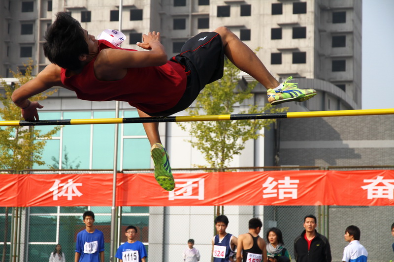 跳高賽場正在進行激烈的角逐。助跑、起跳、騰空、落地,運動員們一系列連貫動作,在空中留下道道優(yōu)美弧線和完美的轉(zhuǎn)身。