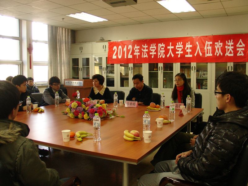12月5日,法學院學院黨總支書記呂來明、團總支書記尹航及入伍學生班主任張羽君、學生代表參加了歡送會,歡送會由黨總支副書記文四英主持。