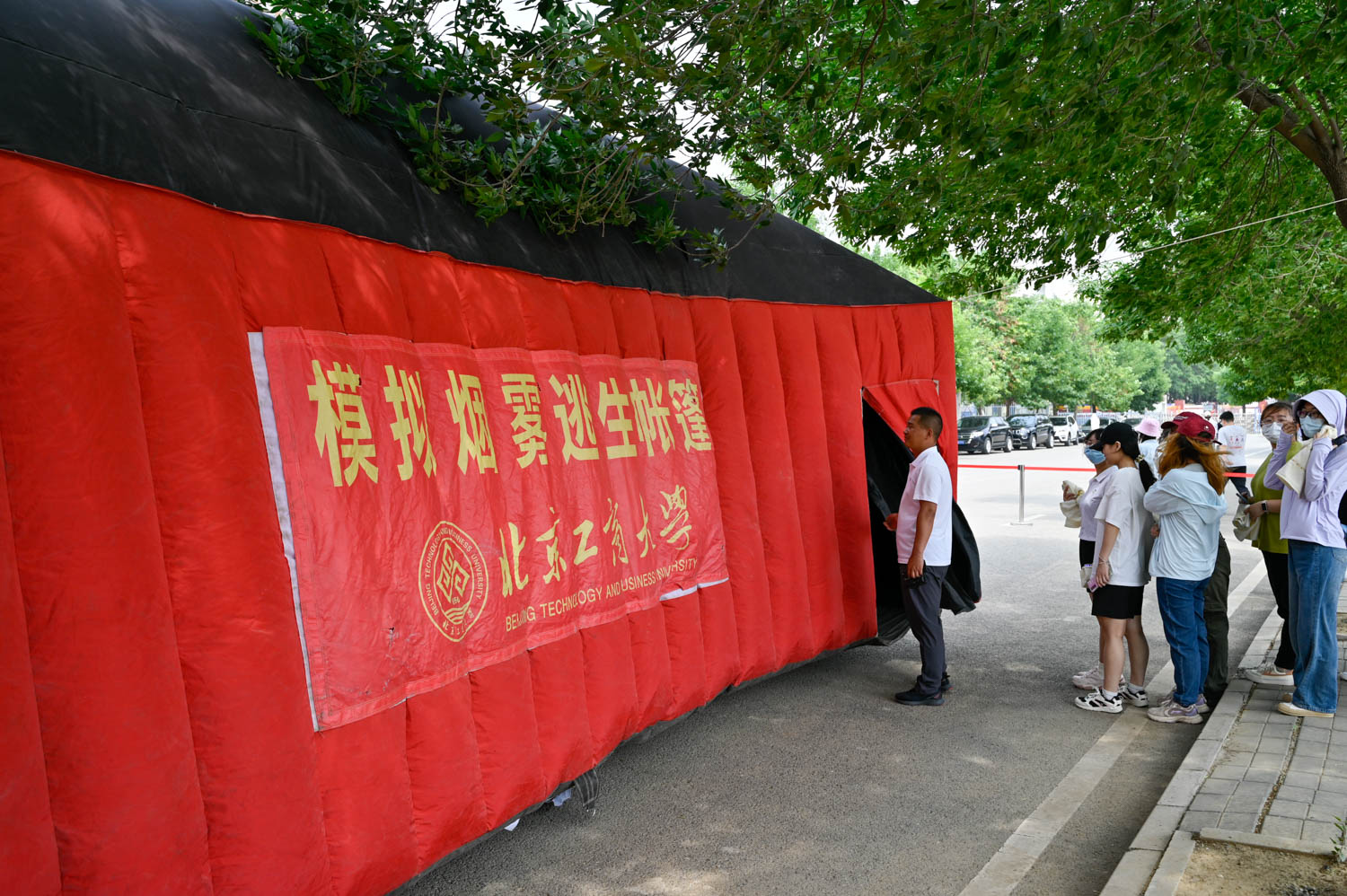 師生們在展示區(qū)參觀了消防救援裝備器材和裝備,在體驗區(qū)分批培訓(xùn)如何使用“模擬滅火實訓(xùn)系統(tǒng)”和體驗“逃生疏散帳篷”。