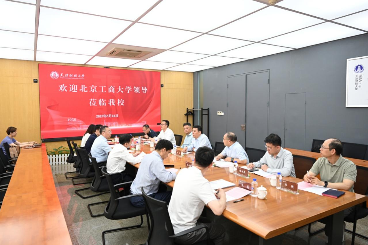 寇紅江代表學校對天津財經大學的熱情接待表示感謝,并聚焦“工商一體化”戰略布局與爭創“雙一流”奮斗目標,介紹了學校的發展藍圖。他指出,北京工商大學和天津財經大學同屬教育部劃定的財經類高校序列,同為京津冀蒙高校聯盟商科分聯盟的成員單位,共同肩負著服務國家和區域經濟社會發展的使命。近年來,天津財經大學在人才培養、學科建設、智庫建設等方面開展了一系列創新實踐,取得了顯著成效,積累了寶貴經驗,希望通過此次學習調研,進一步深化兩校間的交流與合作,不斷推動兩校事業高質量發展,攜手打造京津冀高等教育協同發展的典范。